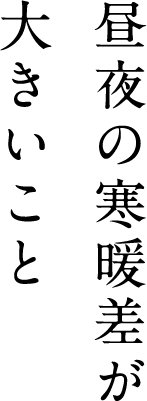 稲は太陽の光を浴びて育ちます。その浴びる光の量が多ければ多いほど光合成で蓄えられる養分が豊富になります。そして夜に涼しくなると、稲はその養分をうまみ成分に変えて蓄えるのです。夜に気温が下がらない状態になると、稲は昼に蓄えた養分を消耗し、うまみ成分が減ってしまいます。そのため、お米づくりには昼夜の寒暖差が必要なのです。